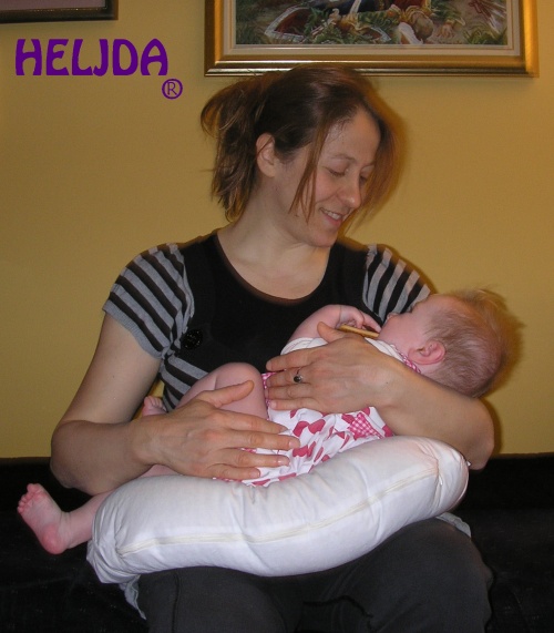 Zakrivljeni deo jastuka idealan je za dojenje. Postavlja se oko stomaka, dok se beba oslanja na jastuk, čime se: